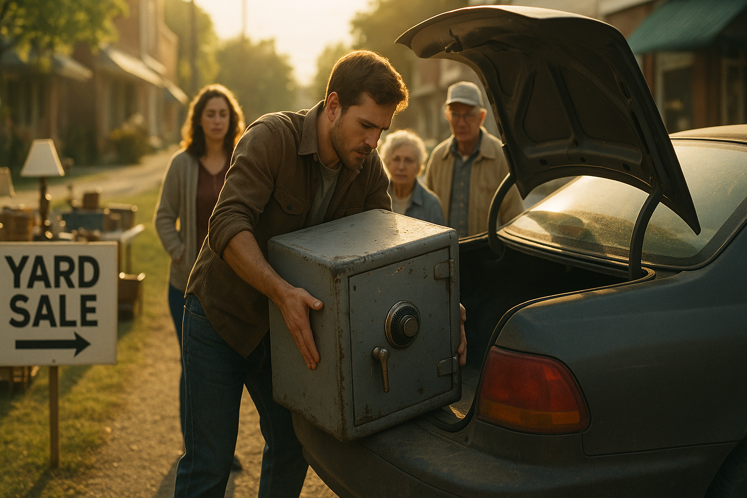 すべてはちょっとした冗談のつもりでした。ネイトが見つけたのは、折りたたみテーブルの下に置かれた小さな金庫。赤いマーカーで雑に「10ドル」と書かれた値札が貼られています。売り主は肩をすくめ、「倉庫から出てきたもので、多分空っぽだよ」と言うばかり。中身は分からない。でも10ドルで謎を買えるなら悪くない。ネイトはにやりと笑い、両手で持ち上げました。思ったよりずっしりと重い。その重さが、これから起こることをまるで暗示しているようでした。