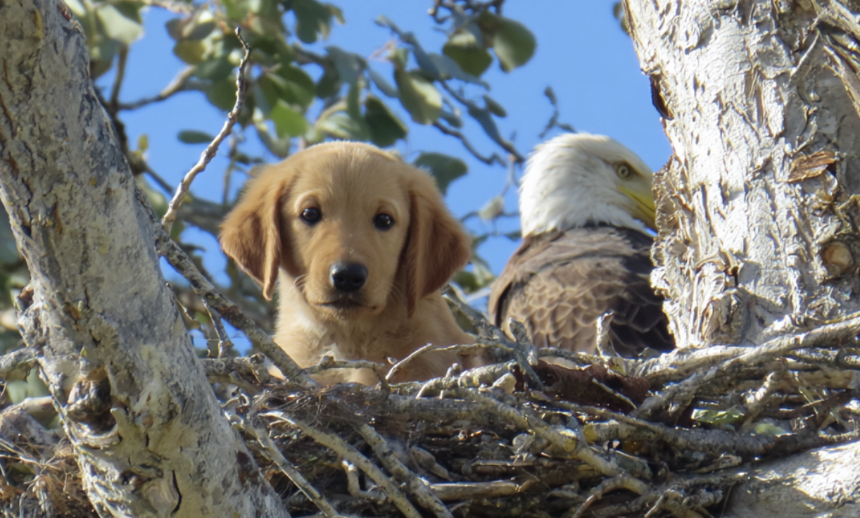 森の中を何時間も探しました。草むらや小川、崖の上までもくまなく調べます。もう諦めかけたそのとき、一人が叫びました。「あそこを見て!」遠くの高い松の木の枝に、大きな巣のようなものが見えたのです。まさか、あれがワシの巣なのでしょうか?そしてその中に、子犬がいるのか?