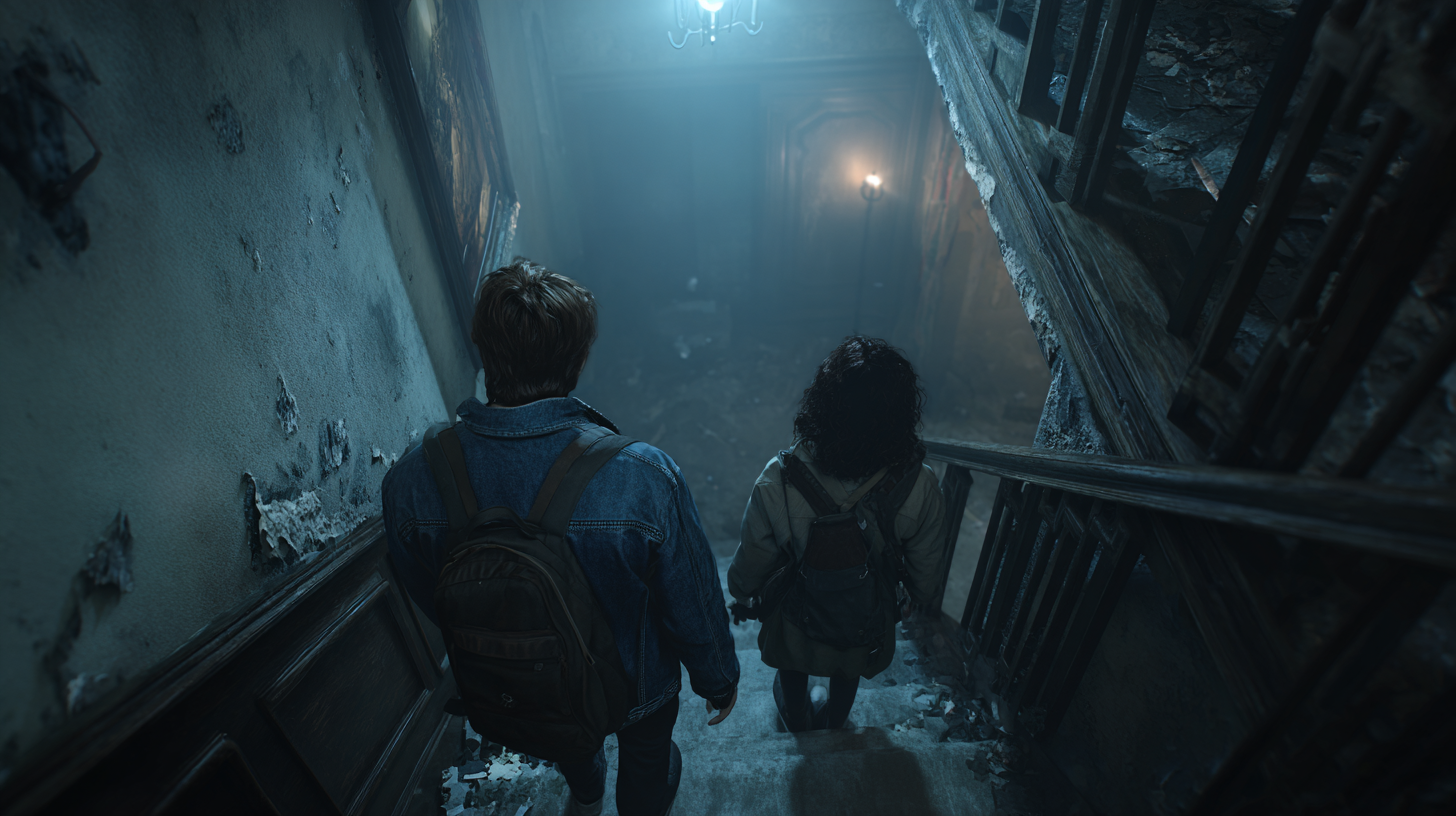 扉の先は、らせん階段が下へと続いていた。暗闇の中から古びた紙とロウの匂いが漂ってくる。リアムが先に降り、ライトで足元を照らしながら一歩ずつ進んでいく。階段はまるで永遠に続くようで、やがて小さな地下室にたどり着いた。そこには、時が止まったような空間が広がっていた。